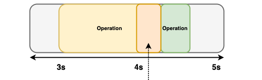 - The subsequent request which should have started at 4.00 s. This request was delayed by 100 ms, denoted by the orange-colored area in the following diagram, and had a response time of 200 ms. When calculating the latency for this request, OpenSearch Benchmark accounts for the delayed start time and combines it with the response time. The latency for this request is 300 ms.